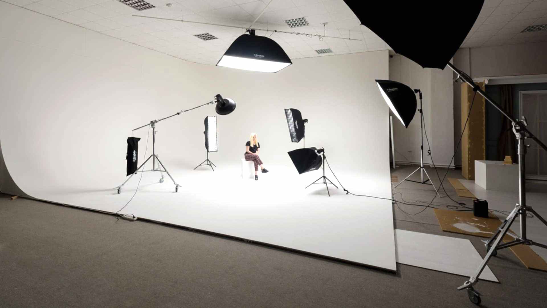 6 metre yüksekliği, 9x10 metre L form yapısı ile fotoğraftan videoya projeleriniz için beyaz sonsuz alan.